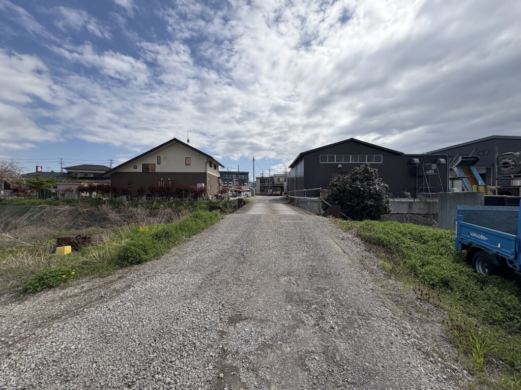 バイパスから物件までの経路には私道もあり、幅員はもちろんバイパスのように広くはなく、記載のように最も狭い部分では4mですが、現状10t車も問題なく出入りしています。